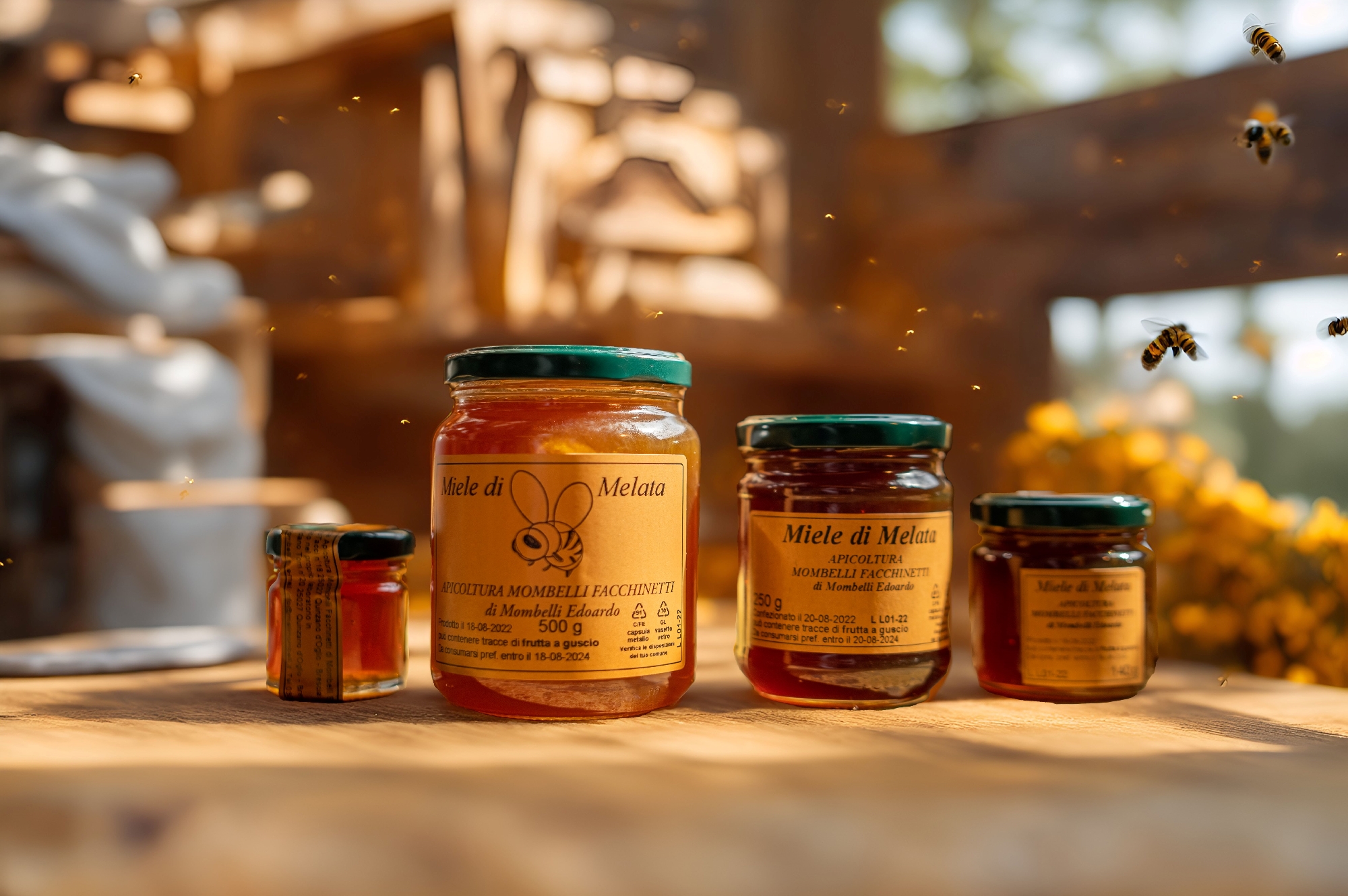 Con il passare degli anni, l’esperienza di Giacomo cresce e gli permette di produrre diverse tipologie di miele, che inizia a vendere nei mercati locali. Nei primi anni 2000, il figlio Edoardo, attuale titolare, decide di seguire le orme del padre, condividendone la passione e portando l’azienda a crescere ulteriormente, fino a produrre mieli di altissima qualità.